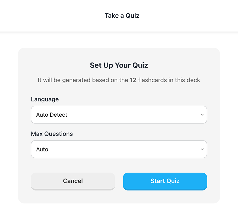 Create personalized quizzes from your flashcards. Assess your knowledge and reinforce learning with each completion.